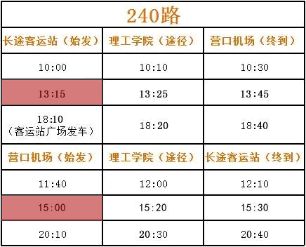從2017年4月10日起,240路機(jī)場(chǎng)專線由每日下午1:15(客運(yùn)站發(fā)車);15:00(藍(lán)旗機(jī)場(chǎng)發(fā)車),更改為每周二、四、六下午發(fā)班,每周一、三、五、七停運(yùn)。